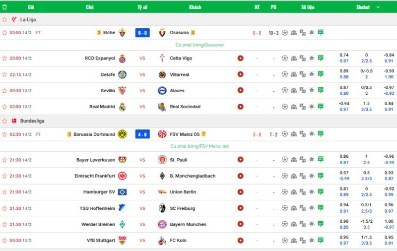 Kết quả và tỷ số trực tuyến – Theo dõi từng nhịp trận đấu