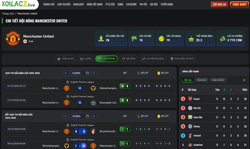 Trang chủ của Xoilac luôn hiển thị những thông tin nổi bật nhất: từ lịch thi đấu m.u, bảng xếp hạng Ngoại Hạng Anh, đến những trận đấu sắp tới. Mình không cần phải lướt web nhiều nơi – tất cả đều hiển thị đầy đủ, tiện lợi trước mắt.